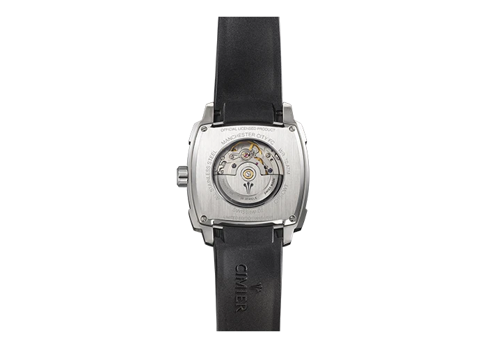 Fond de boîtier : Acier inoxydable 316L fixé avec vis, avec verre saphir transparent et gravé “Official Licensed Product Manchester City FC”